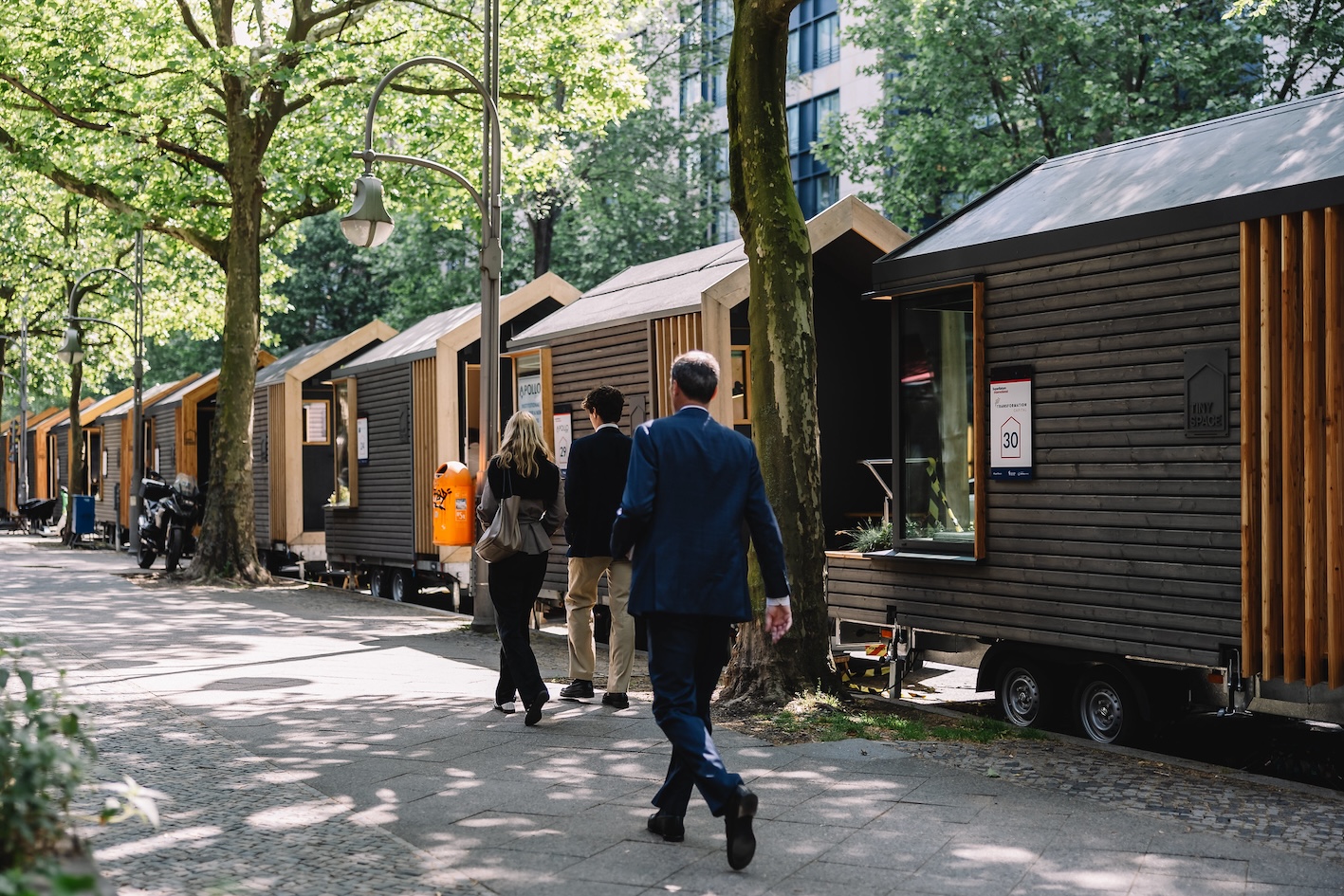 Optisches Zeugnis des hohen Interesses: Schon weit vor dem Tagungsort im Berliner Westen, kurz nach Bikini-Haus und Zoo, beginnt die schier endlose Reihe der angemieteten Tiny House, die als alternative Meeting-Location dienen. War dies im vergangenen Jahr ein noch eher seltenes Bild, so hat der Veranstalter dieses Jahr 50 Tiny Houses zur Verfügung gestellt. Und man muss nicht lange warten, bis jemand den Scherz ausspricht, der wohl vielen auf der Zuge liegt: dass man sich an „Verrichtungsboxen“ erinnert fühle.