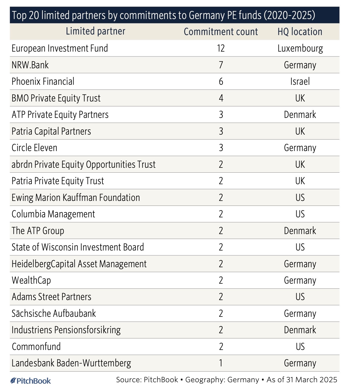 Auffallend, dass unter den Top 20 LPs, die in Private Equity-Fonds mit Deutschlandbezug investieren, kein einziger deutscher Pensionsinvestor ist: