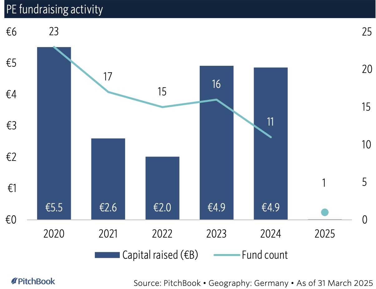 Meldungen von erfolgreichen Fundraisings gibt es außerhalb Deutschlands zu genüge (nicht nur in den USA, sondern ebenso in Frankreich oder Schweden), auch in diesem Monaten. Bemerkenswert, dass auch in Deutschland die PE-Größenordnungen seit 2023 wieder massiv anziehen – wenn auch im internationalen Vergleich auf wirklich niedrigem Niveau (2025 bleibt abzuwarten):