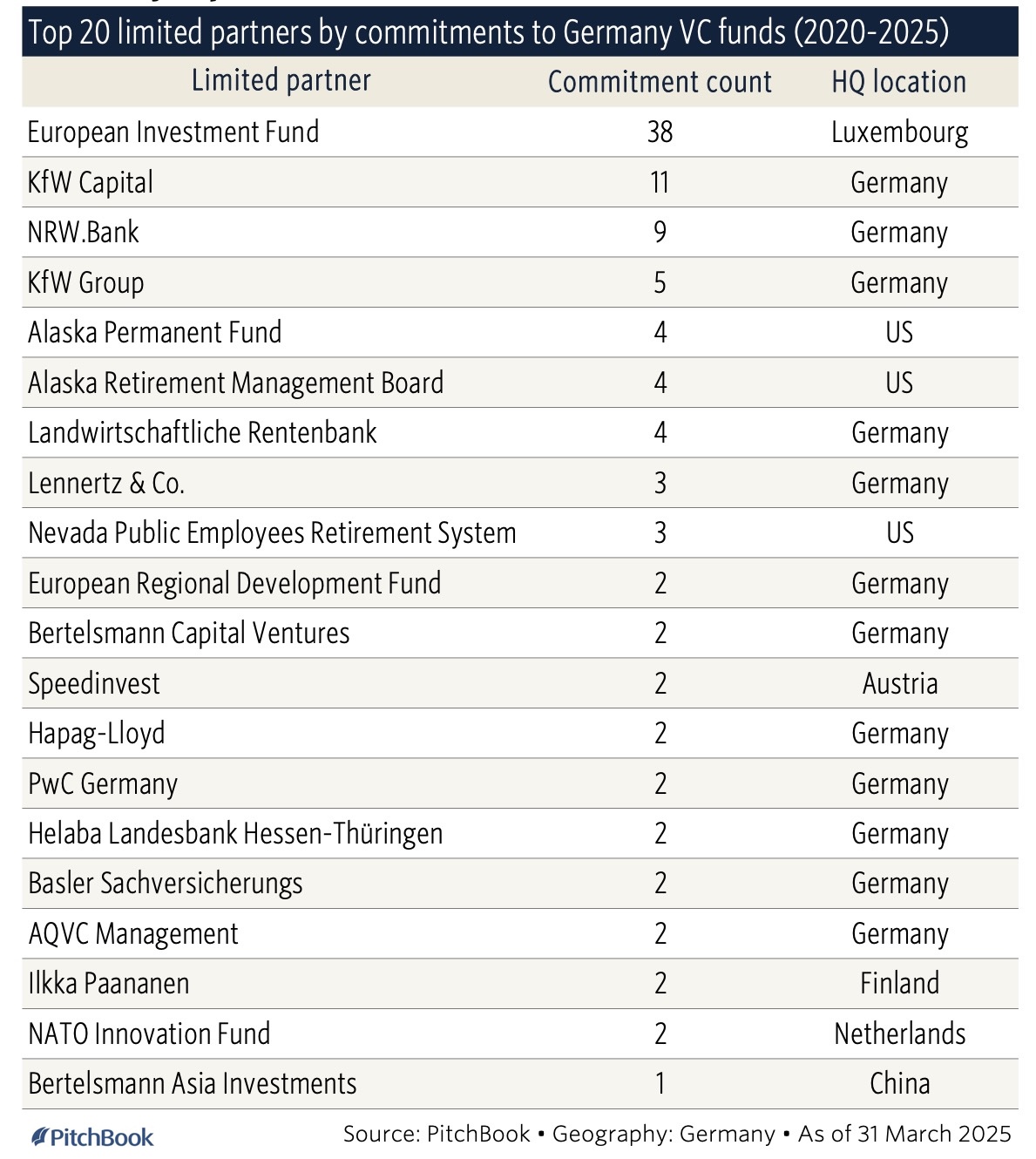 Auffallend, dass unter den Top 20 LPs, die in Private Equity-Fonds mit Deutschlandbezug investieren, kein einziger deutscher Pensionsinvestor ist: