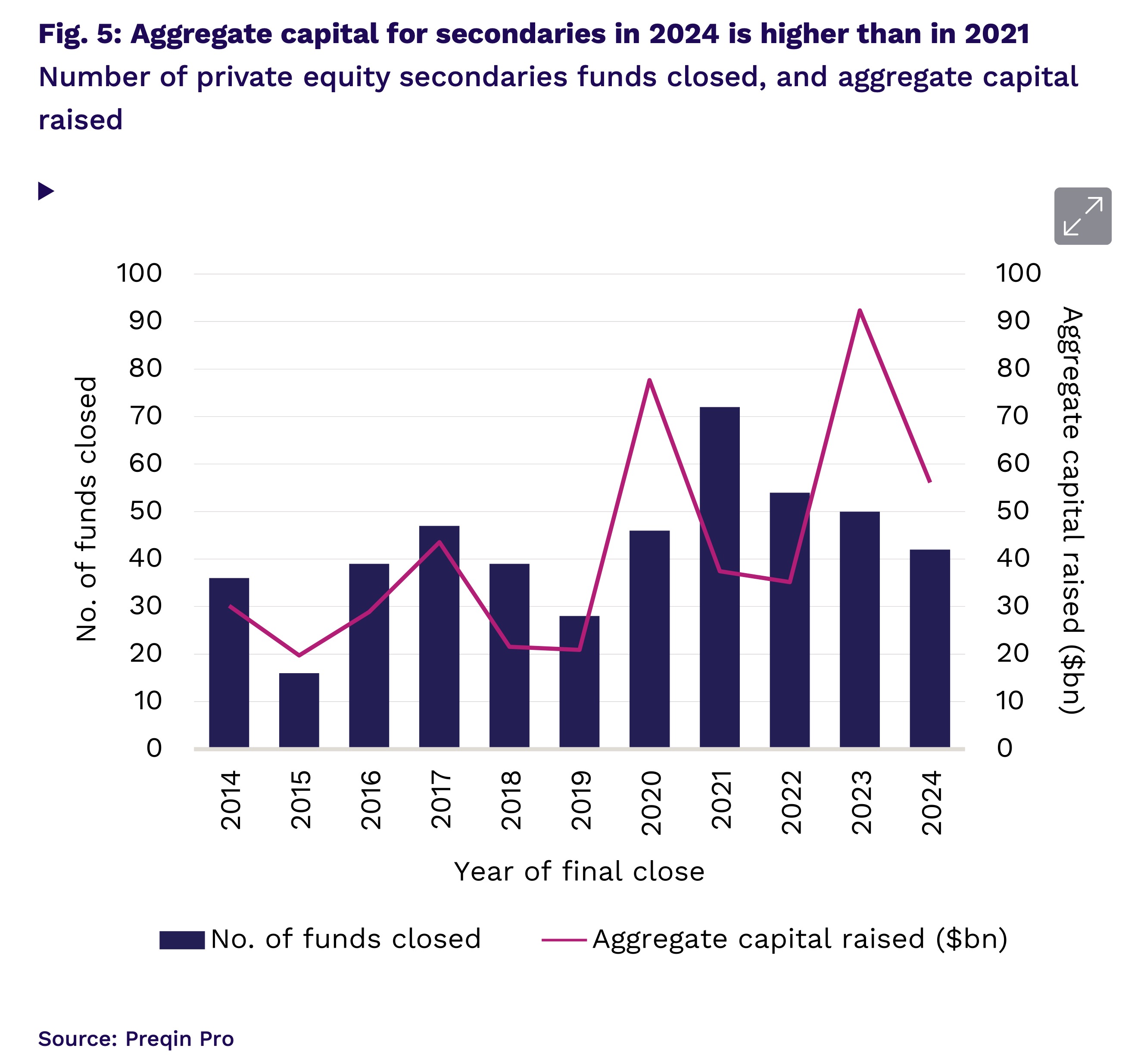 Preqin (18. März): „Fundraising 2024 and 2025 Themes and Trends: LP Appetite for ‘creative Liquidity Solutions’could help recycle Capital.“