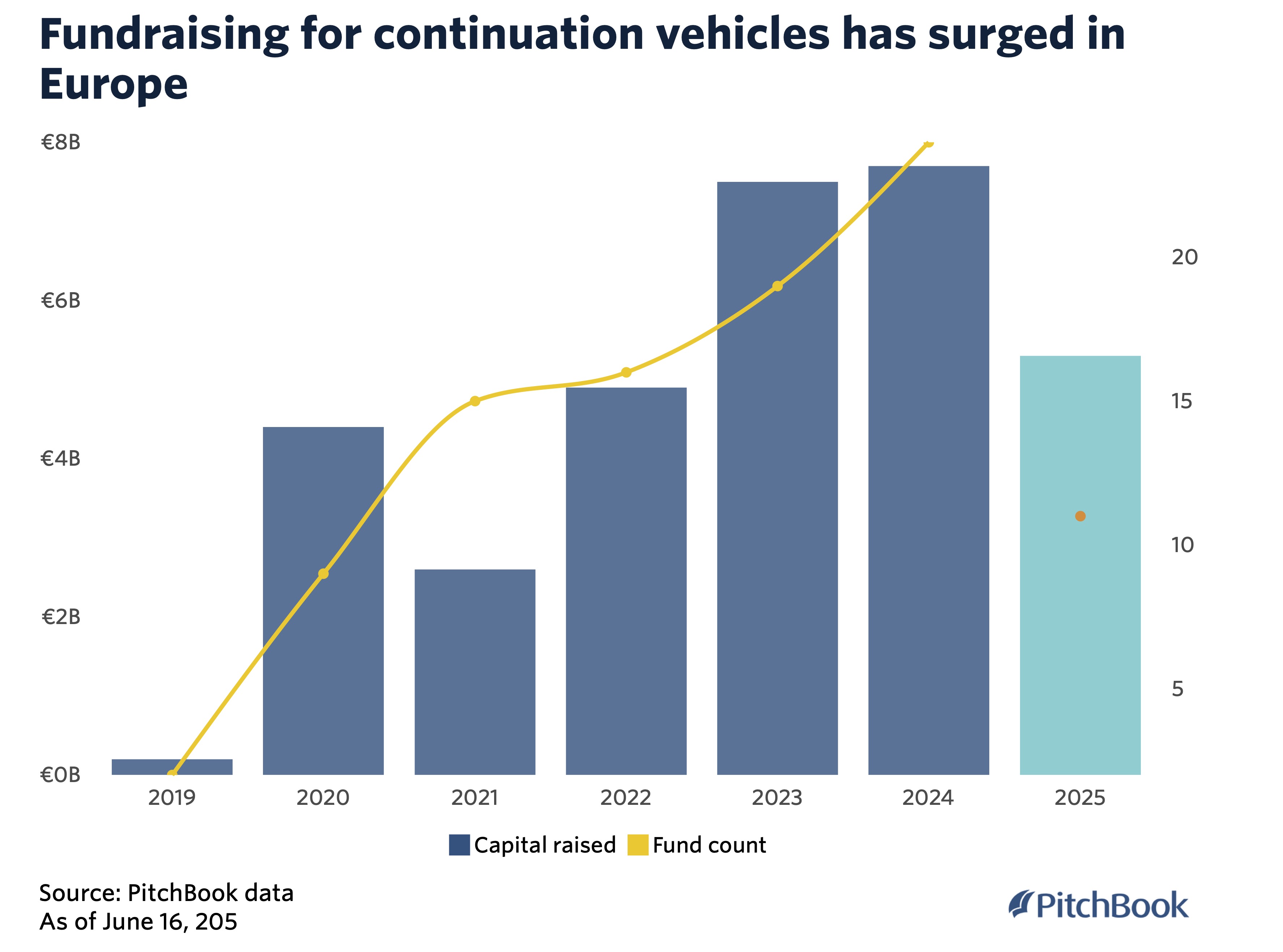 Passend zu der globalen Preqin-Analyse kommen aktuelle Zahlen von PitchBook für Europa: Für 2025 YTD verzeichnen die Analysten 5,3 Mrd. USD eingesammeltes Kapital in 11 Contis. 2023 und 2024 lagen die Werte für das Gesamtjahr jeweils bei 7,5 Mrd. USD (s.o.: Preqin registrierte weltweit für 2024 insg. 39 Mrd. USD).