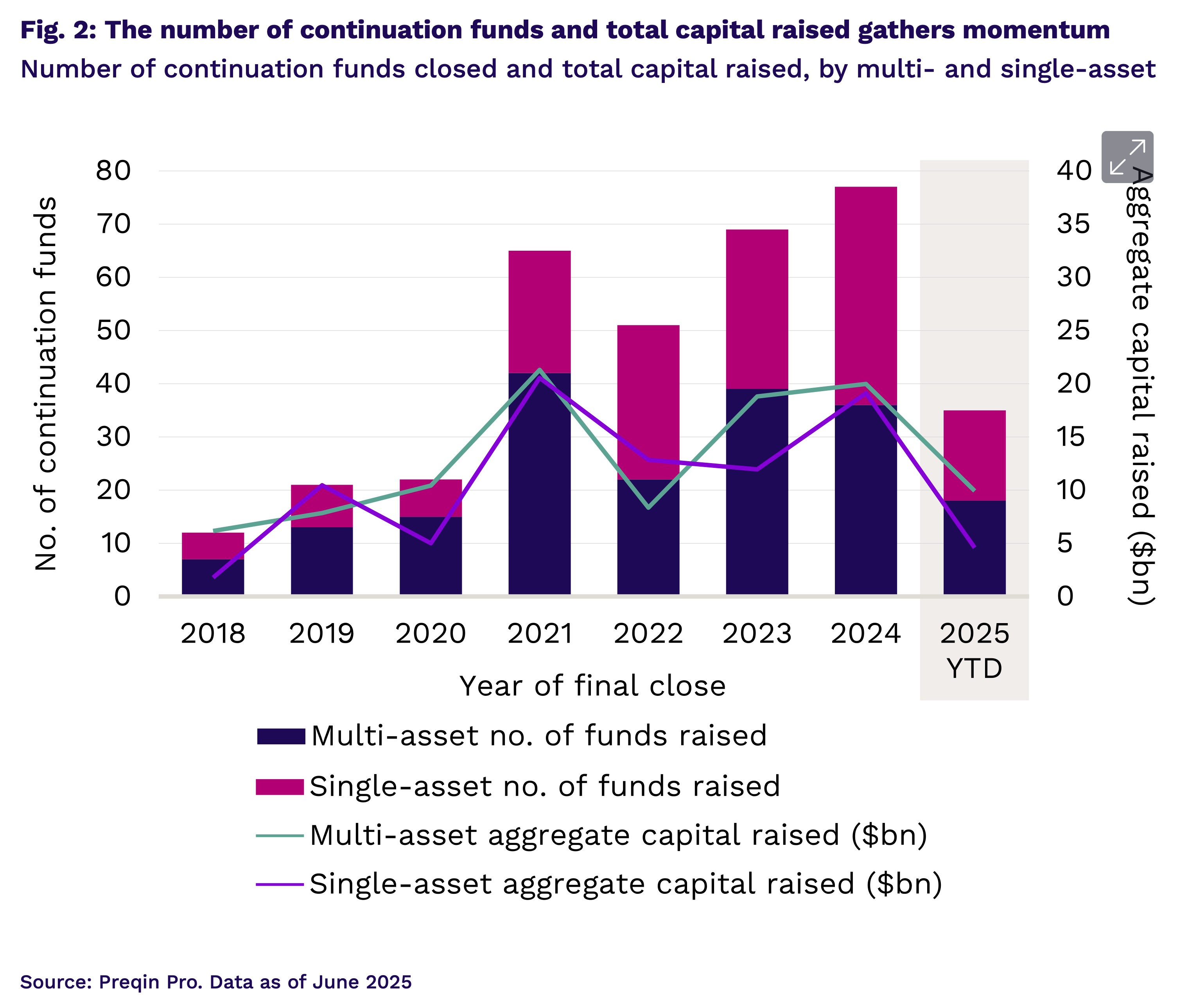 Unter dem Titel „Continuation Funds: a Liquidity Solution for LPs“ hat Preqin sich den aktuellen Entwicklungen bei Contis angenommen und fragt angesichts der 2024er-Rekordzahl an gecloseden Contis, ob dies mit den Bedürfnissen der LPs harmoniert.